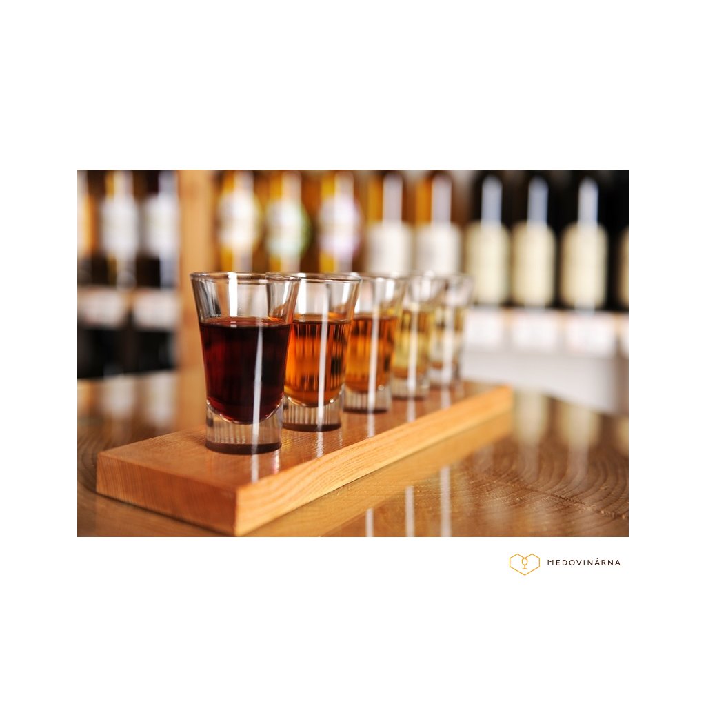 Obsluha Medovinárny může skladbu ochutnávky upravit dle vašeho přání, pokud to umožní aktuální nabídka medovin.