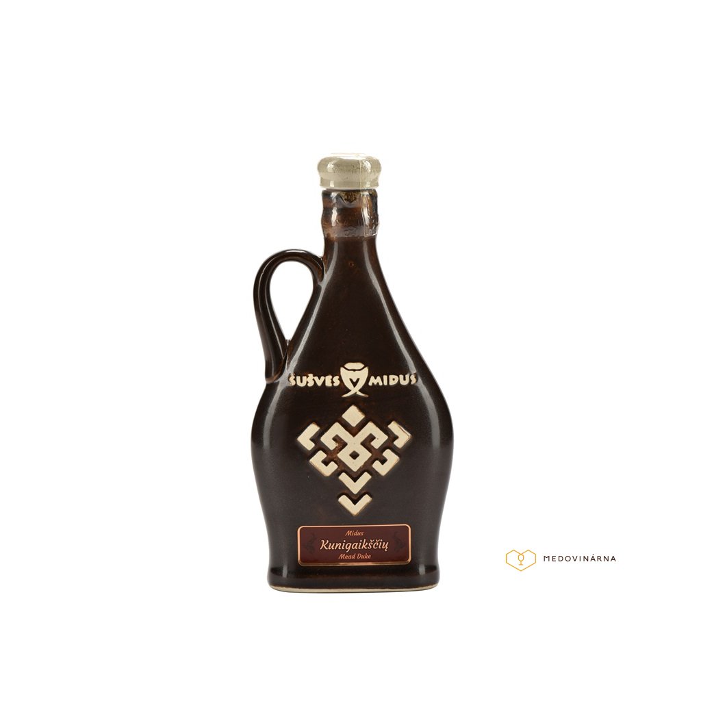 Litevská tradiční medovina - speciální, luxusní medovina vyrobená podle receptu na medovinu ze 14. století z nejlepšího a nejvoňavějšího lesního a lučního medu a plněná do originální keramiky. Obsahuje min. 50% medu.