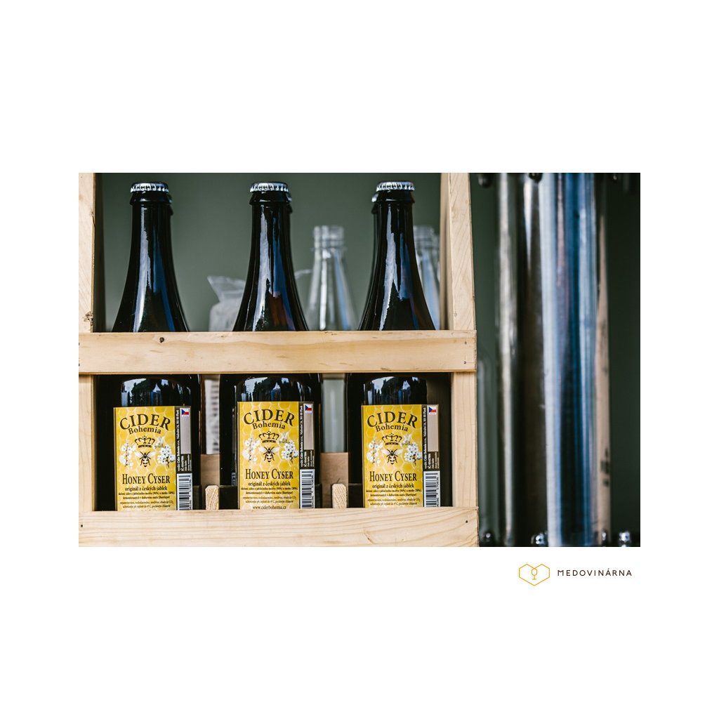 Medový cider byl výroben způsobem fermentace pláství medu společně s jablečným moštem, vyzrával posléze v dubovém sudu.