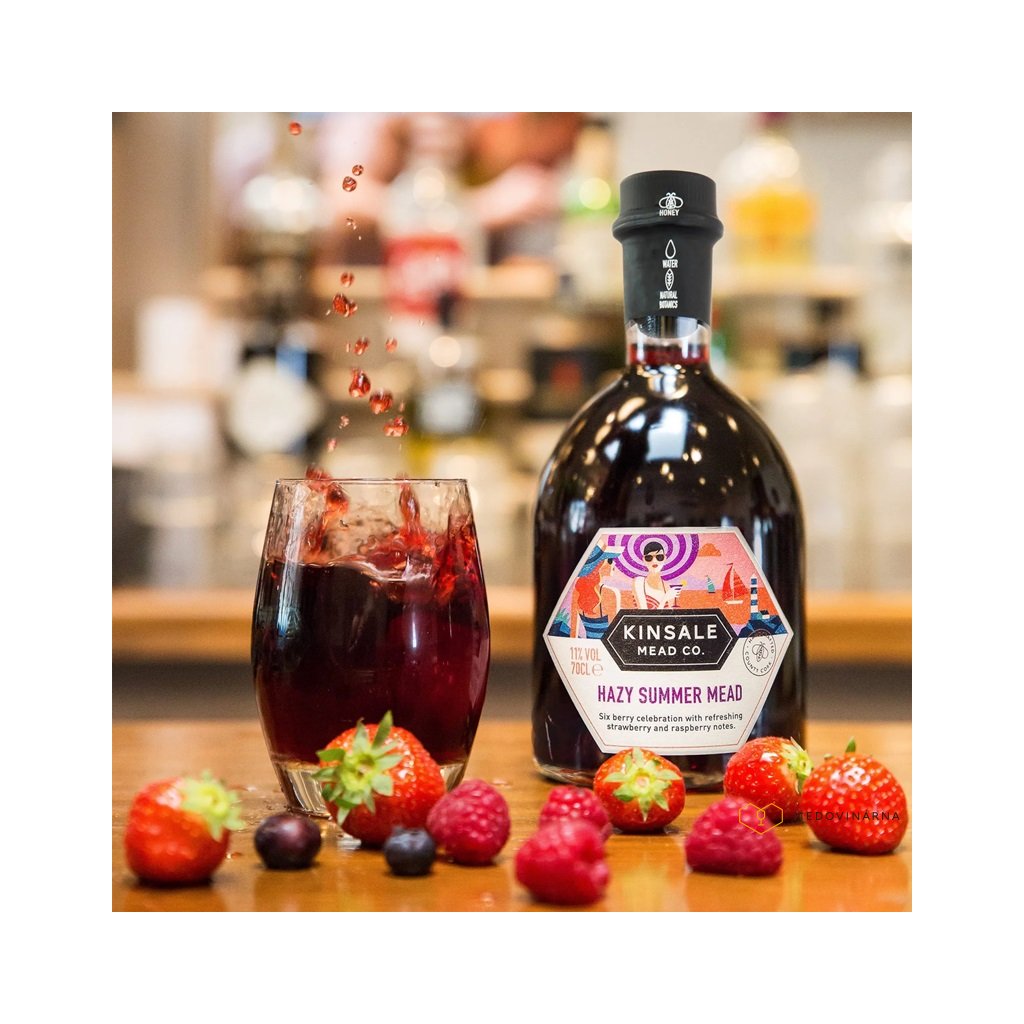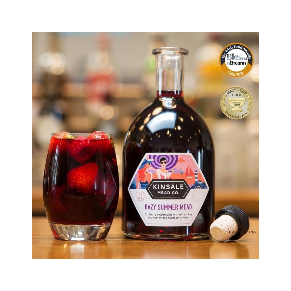Kinsale Hazy Summer Mead (11% ABV) je báječná, ovocná, suchá bobulová medovina s velkorysým jahodovým a malinovým aroma, nádhernou dávkou letních bobulí a hladkým, jemným medovým závěrem.