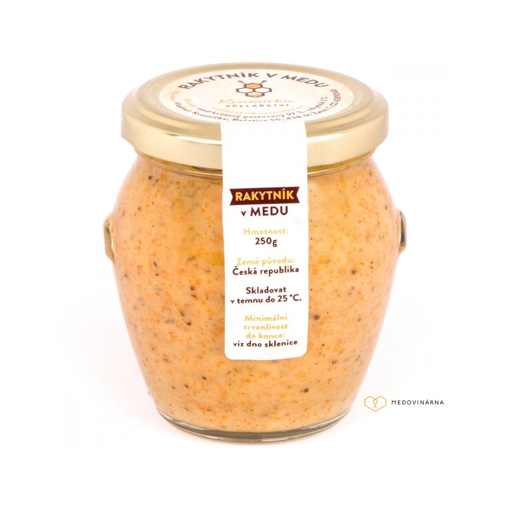Rakytník je známý svým vysokým obsahem vitamínů, antioxidantů a esenciálních mastných kyselin, které přispívají k posílení imunitního systému. Jeho sytě oranžová barva a příjemně kyselá chuť dodávají tomuto medu jedinečný a nezapomenutelný charakter. Pastovaný med na druhou stranu, je šetrně zpracovaný za nízkých teplot, což zaručuje zachování všech cenných enzymů, minerálů a vitamínů. Navíc má tento med jemnou krémovou konzistenci, která umožňuje snadnou aplikaci a zajišťuje, že se med nerozlévá. Společně tvoří rakytník a pastovaný med neodolatelnou kombinaci, která může posílit vaše zdraví, zlepšit náladu a zvýšit energii. Tento med můžete konzumovat samostatně, přidat do čaje nebo jogurtu, použít jako zdravou náhradu cukru při pečení nebo jako chutnou polevu na palačinky.