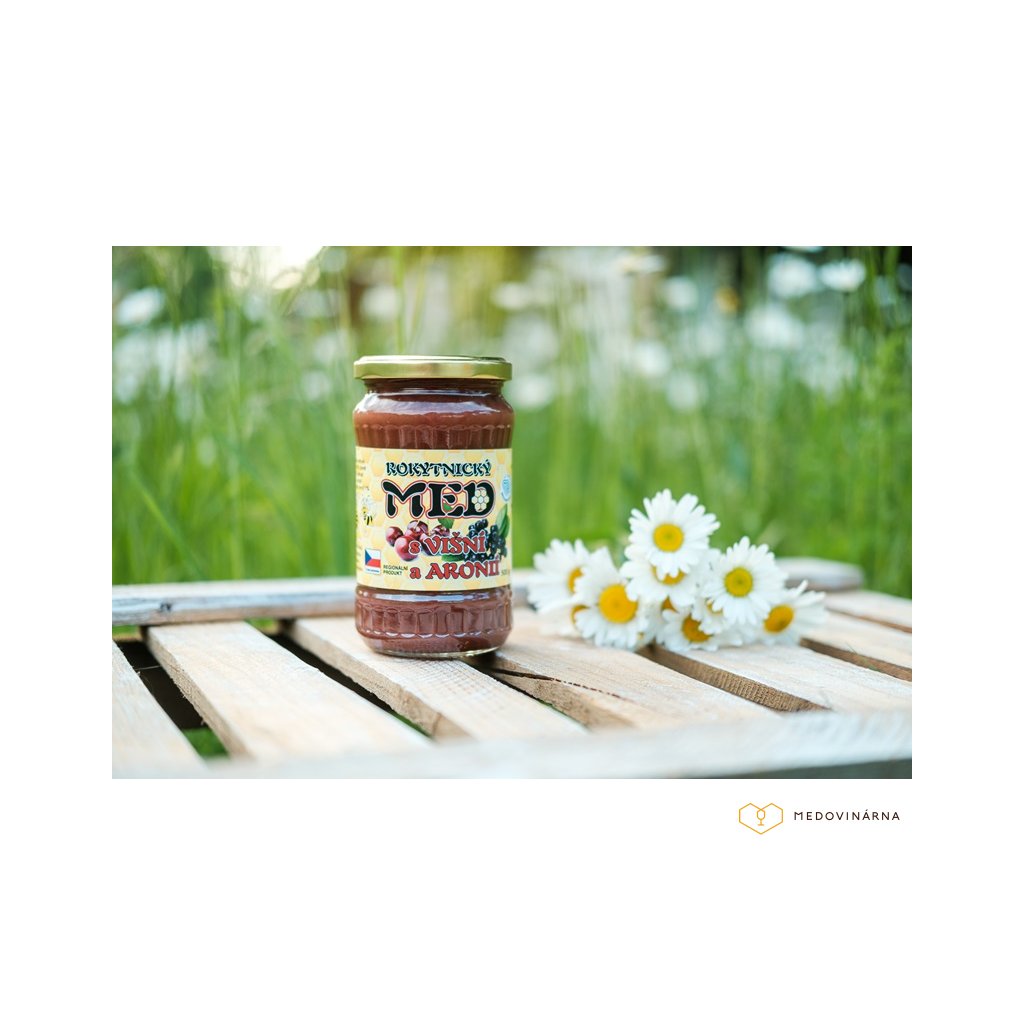 Jemná šťáva zralých plodů višní a aronie v pastovaném květovém medu. Mlsné pokušení k víkendovým snídaním nebo prostě když vás honí mlsná:).