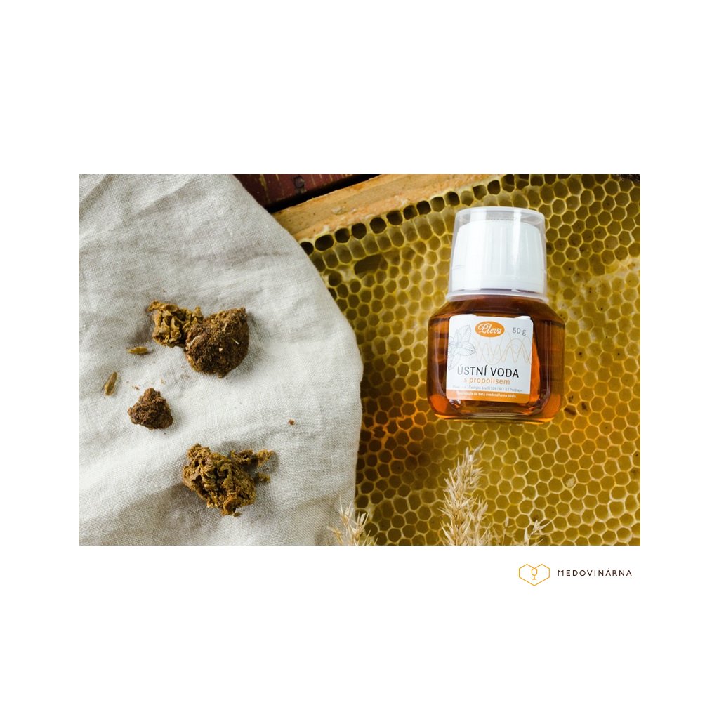 „Přípravek s propolisem je určen pro ústní hygienu. Obsahuje propolis, který má antimikrobiální účinky a výtažek z heřmánku, který má zklidňující účinky. Pravidelná ústní hygiena a použití ústní vody dle návodu k použití zpevňuje dásně, omezuje krvácení dásní a kazivost zubů. Osvěžuje a navodí příjemný pocit.“